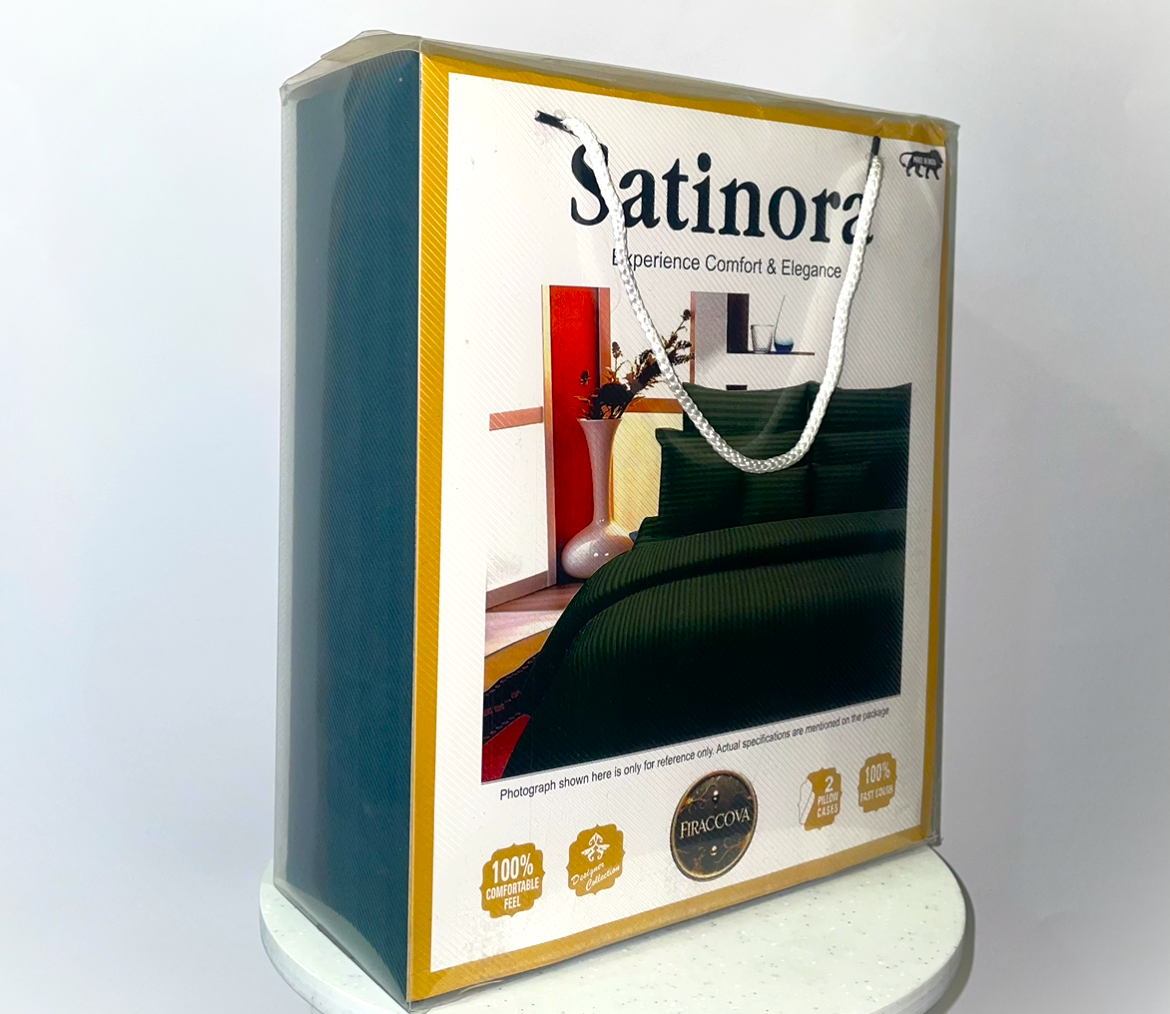 Infuse your space with the richness of deep emerald green from the Satinora collection. This premium satin bedsheet radiates elegance with its lustrous finish and smooth texture, creating an ambiance of refined luxury. Perfect for those who love bold, captivating interiors.