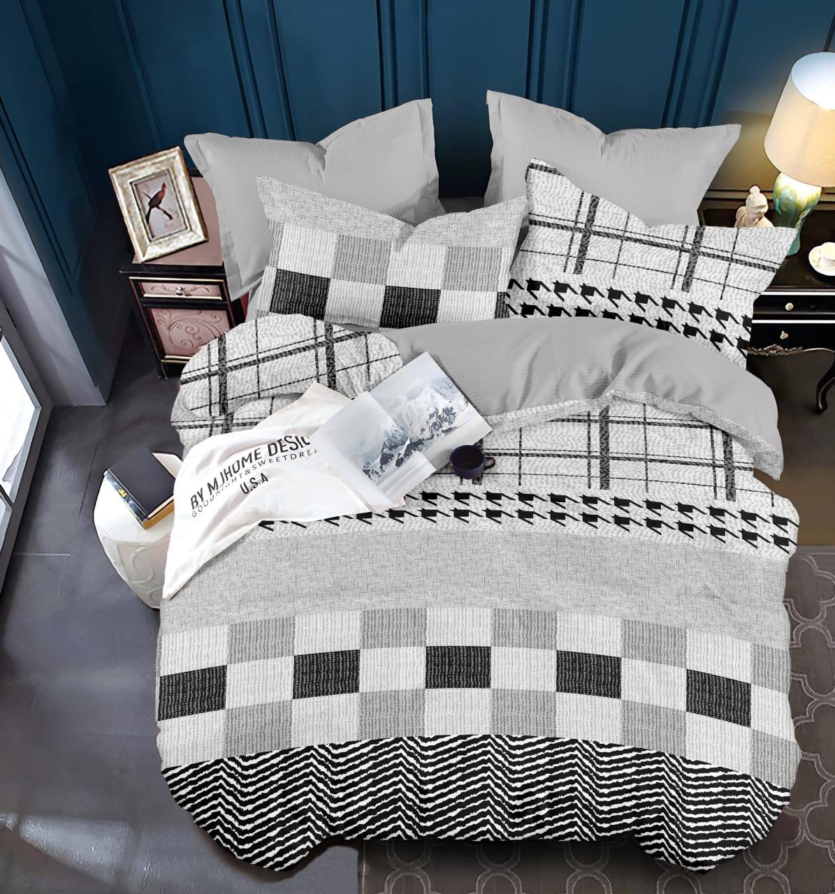 Embrace the timeless appeal of black and white with Monochrome Charm. This bedsheet seamlessly blends modern patterns with classic tones, offering a sophisticated touch to your bedroom. Perfect for those who love a balance of elegance and simplicity, it's a statement piece for restful nights and inspired mornings.