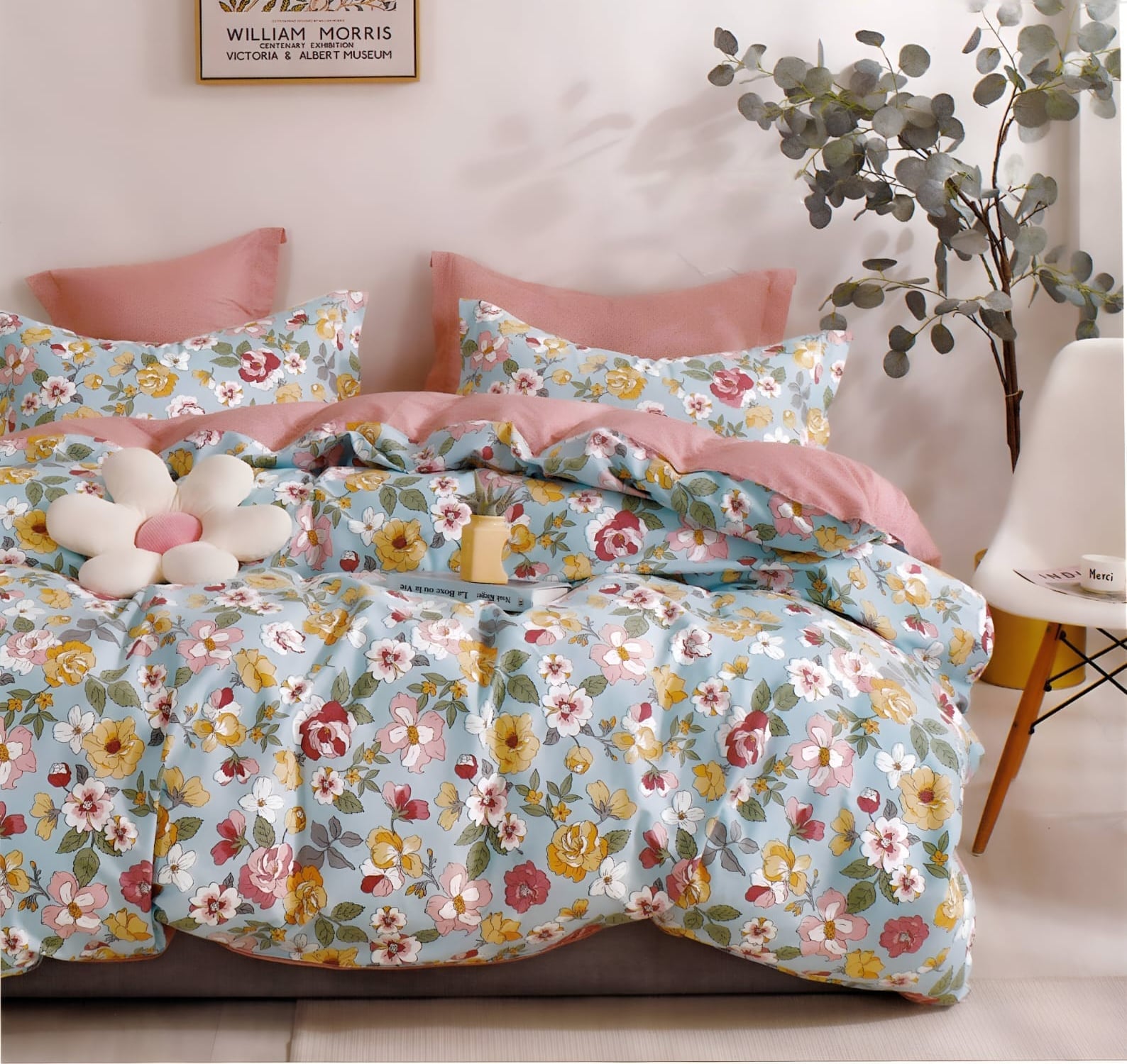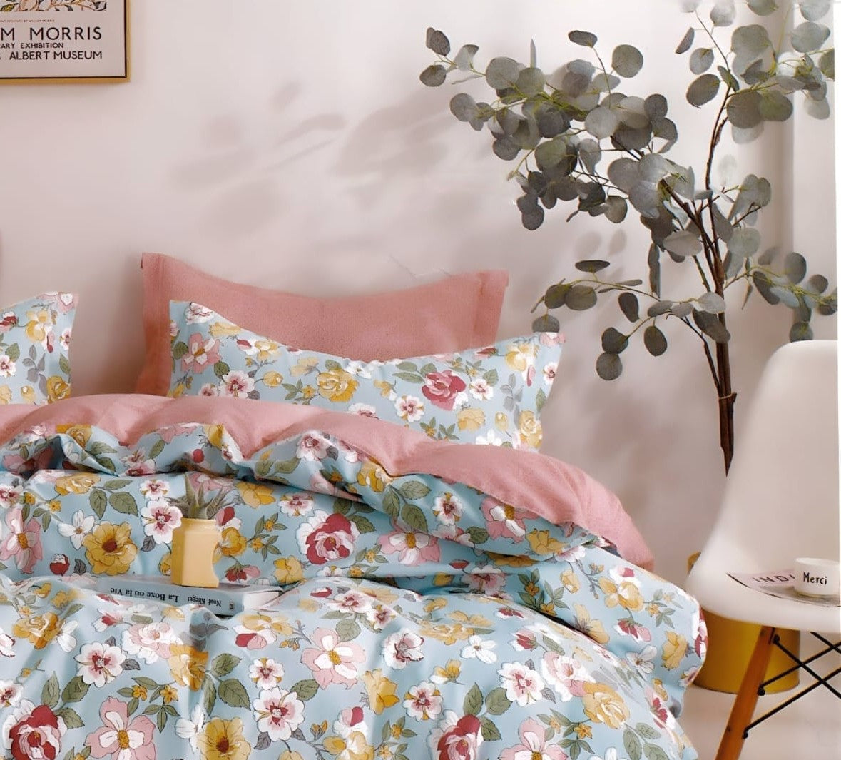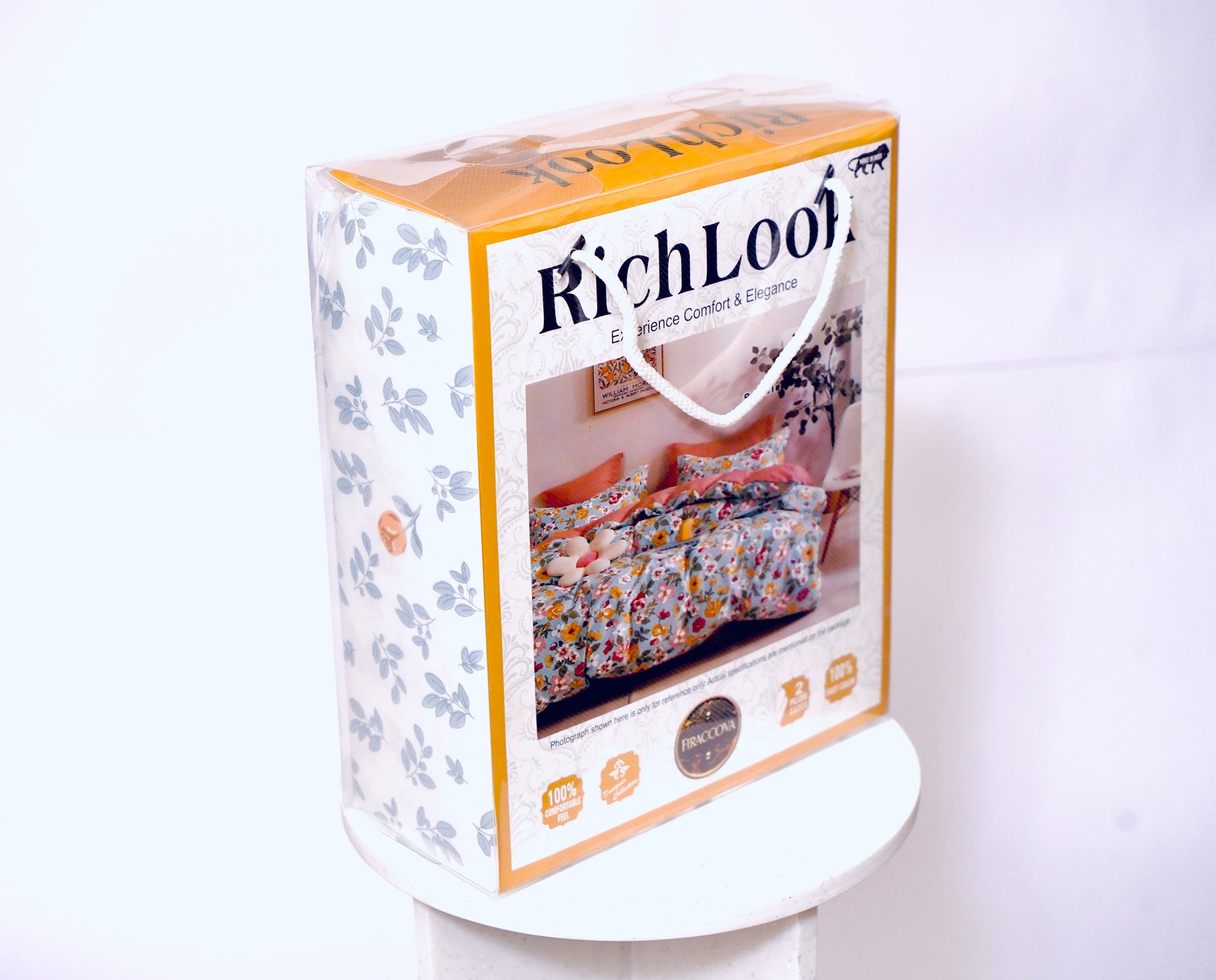 Brighten your space with the lively charm of this RichLook bedsheet, adorned with a vibrant floral design on a serene blue backdrop. Its cheerful colors and premium finish evoke the freshness of spring, making it the perfect choice for a joyful and elegant bedroom.