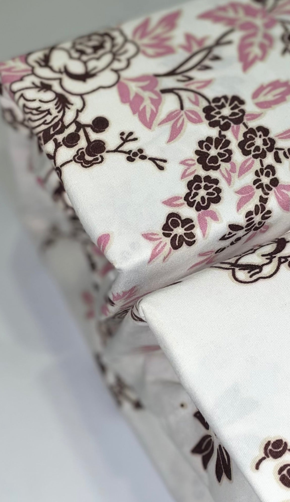 Immerse yourself in the timeless allure of delicate floral vines and soft rosy accents on a pristine white canvas. This design whispers romance and sophistication, perfect for an elegant retreat.
